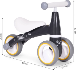 ECOTOYS treniņu līdzsvara ritenis ir ideāls pašiem mazākajiem, kuri sāk iepazīt riteņbraukšanas pasauli. Tas ir piemērots bērniem no 12 mēnešu vecuma, kuri jau apguvuši pirmos soļus. Braukšana ar šo līdzsvara riteni veicina motorikas koordināciju un spēju noturēt līdzsvaru, tādējādi sagatavojot bērnu turpmākām prasmēm, piemēram, uzsēšanos, nolekšanu un atstumšanos.