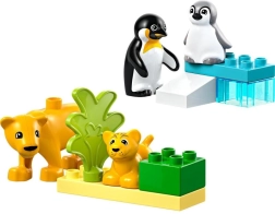 Dodies ar bērniem izzinošā ceļojumā pie dzīvnieku ģimenēm no Antarktīdas un Āfrikas. Pateicoties lielajiem, viegli satveramajiem LEGO DUPLO klučiem, mazajiem būvētājiem izdosies izveidot ledus slidkalniņu pingvīniem un pļavu lauvām, spēlējoties dabiski apgūstot atšķirības starp silto un auksto klimatu, kā arī starp pieaugušajiem un mazuļiem.