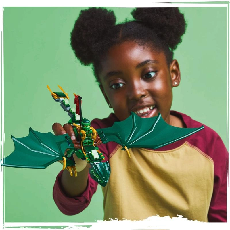 Dodies NINJAGO pasaulē ar modeli Loida zaļais meža pūķis, kuram ir kustīga aste, kakls, kājas, ķepas un lieli spārni, kā arī sēdeklis minifigurai. Komplektā atradīsi Loida minifigūru ar zelta katanas zobenu un pūķa izlūku ar divpusēju kaujas cirvi, kā arī zelta pūķa mazuļus vēl plašākām spēļu iespējām. Ideāla dāvana bērniem no 6 gadu vecuma, kuri mīl dinamiskus stāstus un būvēšanu.