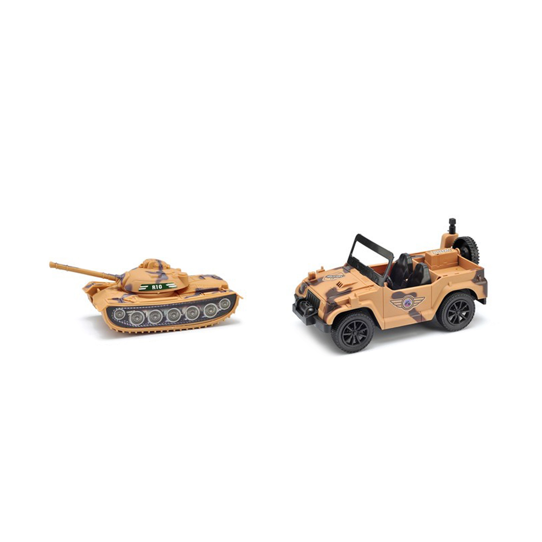 Džips ar brīvgaitu un detalizēts tanks paplašina misijas iespējas. Bērni var viegli veidot dinamiskas pakaļdzīšanās un vienību pārvietošanas ainas.