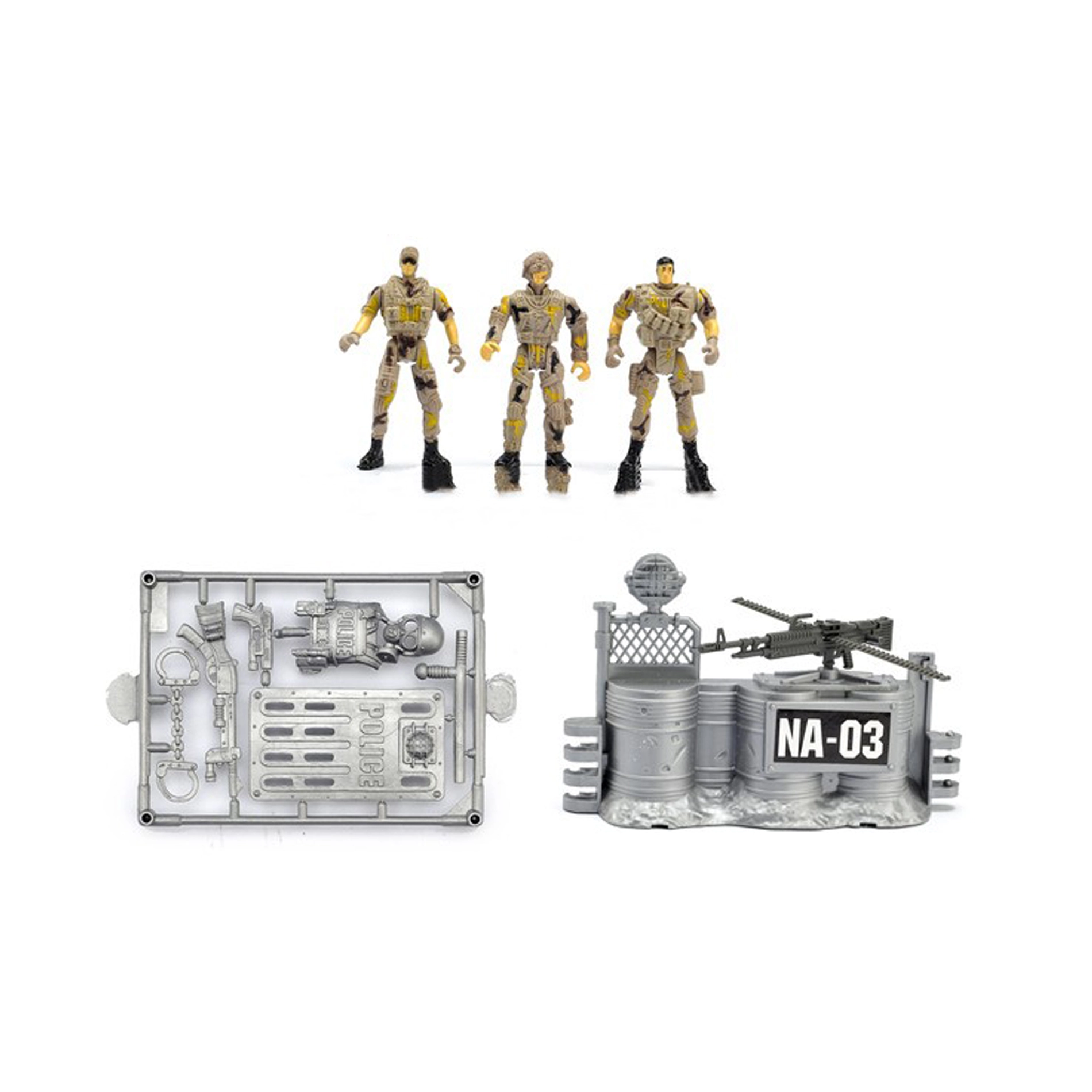 Komplektā ir trīs karavīri un piederumi, kas bagātinās jebkuru darbību – no glābšanas operācijām līdz bāzes aizsardzībai.
