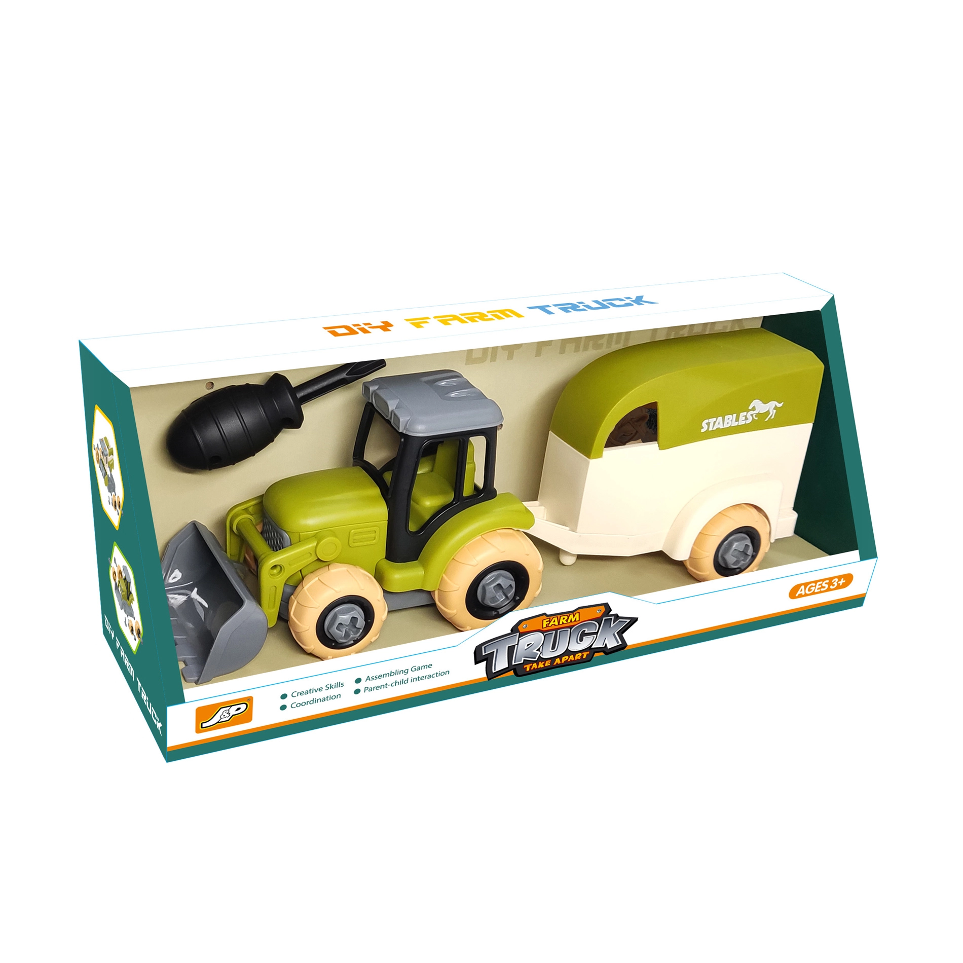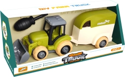 Izklaidējošs komplekts mazajiem zemniekiem: skrūvējams traktors ar zirgu piekabi un bērnu skrūvgriezis attīsta sīko motoriku, tehniskās iemaņas un radošo domāšanu. Izturīga plastmasas konstrukcija, iespēja izjaukt un salikt no jauna, komplektā ir arī zirgs vēl reālākai spēlei.