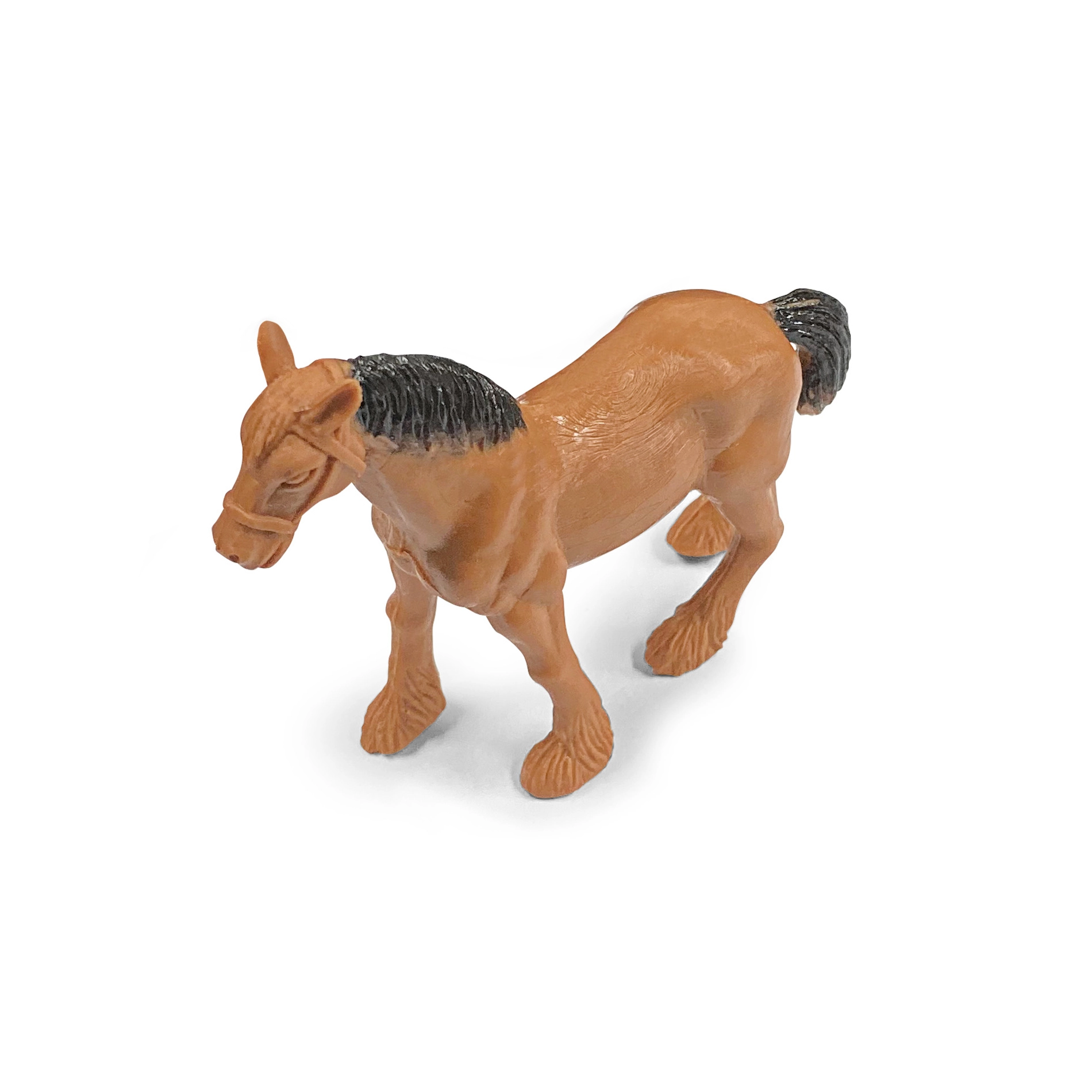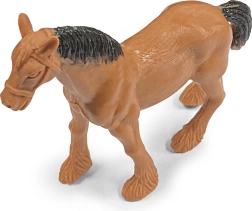 Komplektā ir traktors, piekabe un plastmasas zirgs 8 cm izmērā – ideāla kombinācija tūlītējai spēlei.
