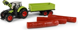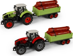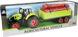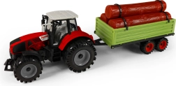 Atklājiet lauku saimniecības prieku ar detalizēti izstrādātu traktoru ar piekabi malai, kopējais garums ap 45 cm. Traktors pārvietojas ar inerces piedziņu vienmērīgai kustībai, piekabei ir brīvgaita un to var viegli atvienot. Baļķus var viegli noņemt, kas veicina sīkās motorikas un iztēles attīstību.