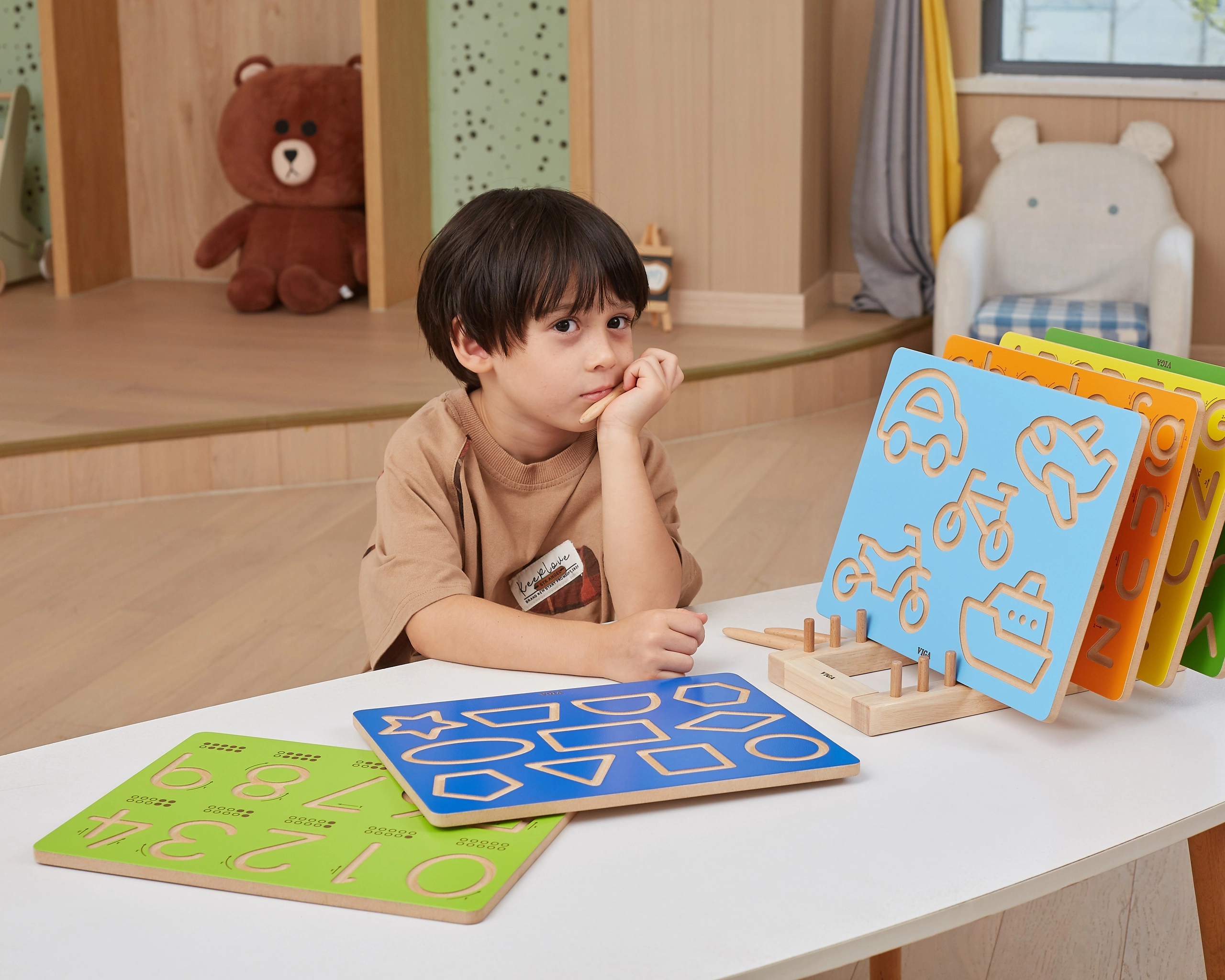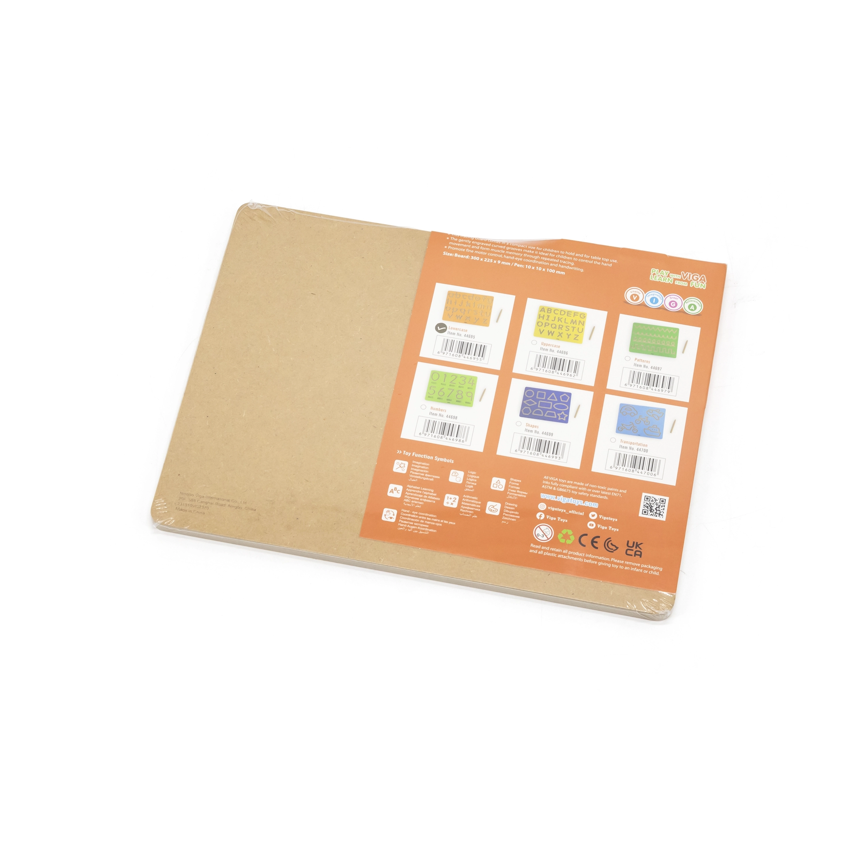 Šī dēļa kompaktais izmērs ļauj to ērti izmantot uz galda vai darba virsmas, padarot to ideālu bērnu rociņām.