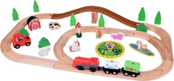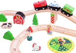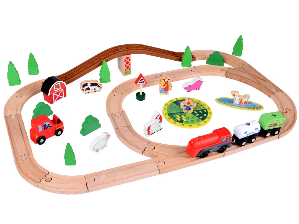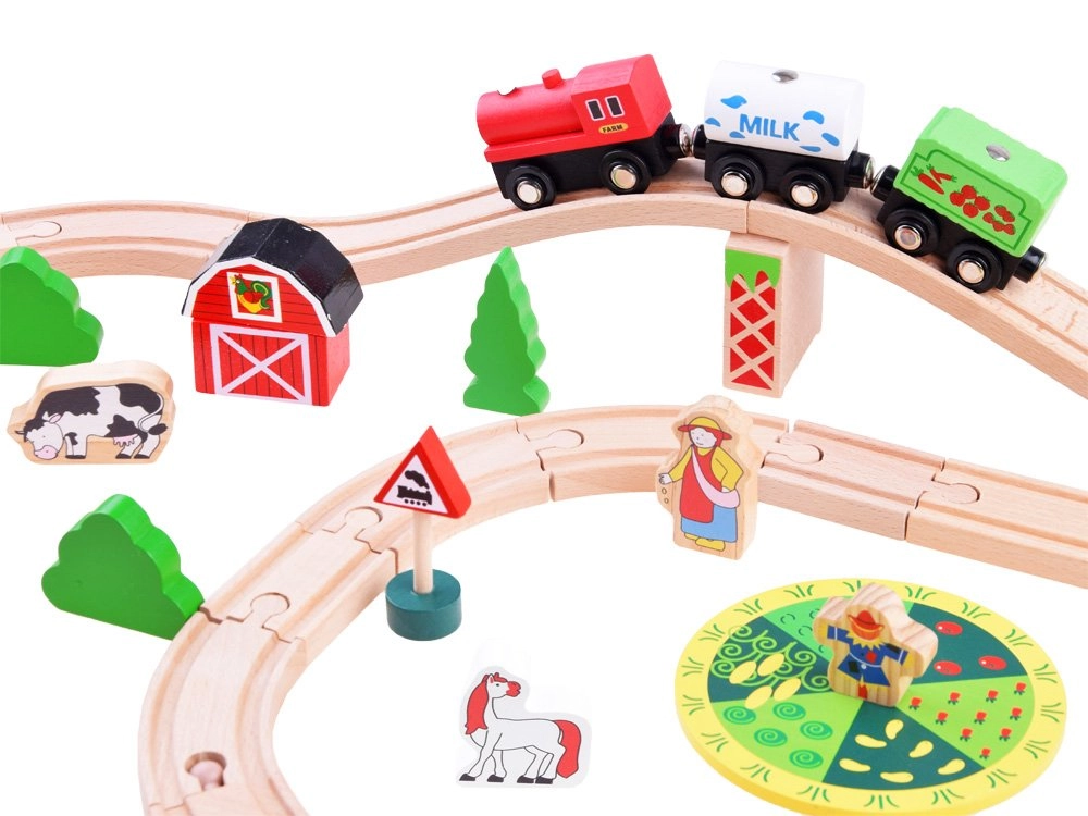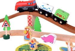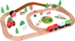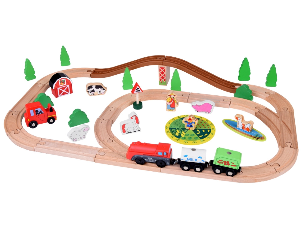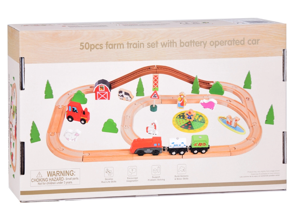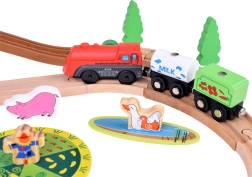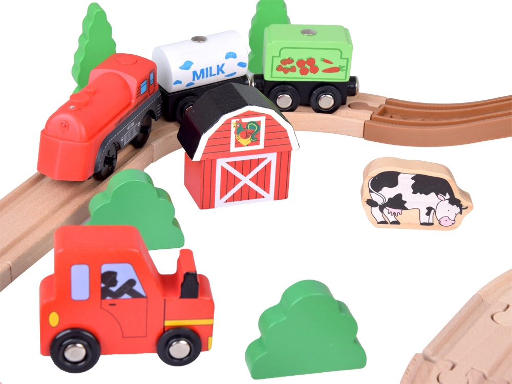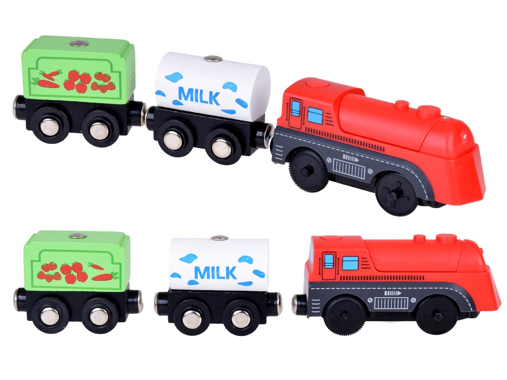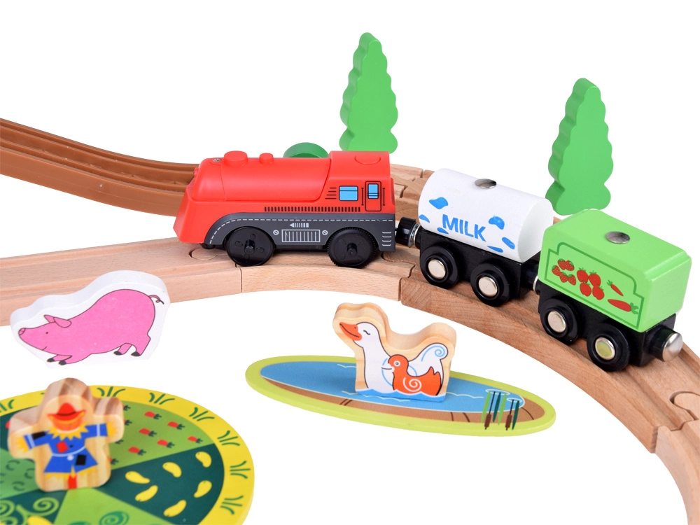 Šis koka vilciena komplekts ir lieliski piemērots bērnu iztēles un motorikas prasmju attīstīšanai. Augsta izgatavošanas kvalitāte ar pievilcīgām krāsām un rakstiem nodrošina drošību un ilgstošu izklaidi. Baterijām darbināma lokomotīve (darbojas ar 1,5 V AAA bateriju, baterijas nav iekļautas komplektā) vienmērīgi brauc pa trasi un fascinē ar gaismas efektu.