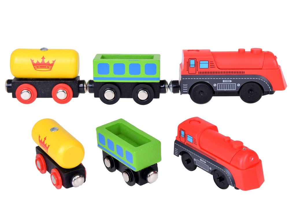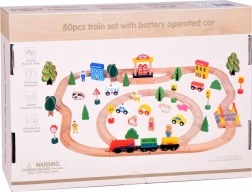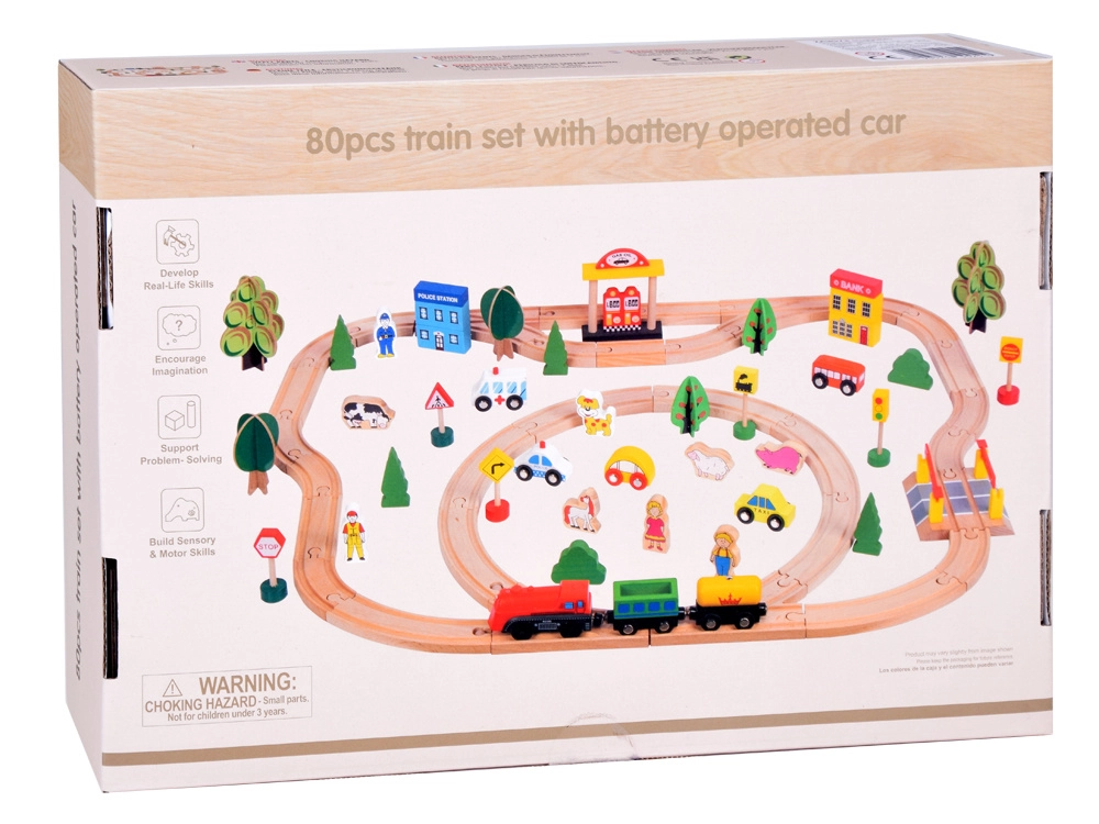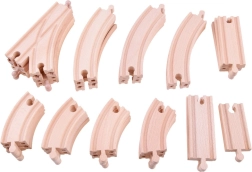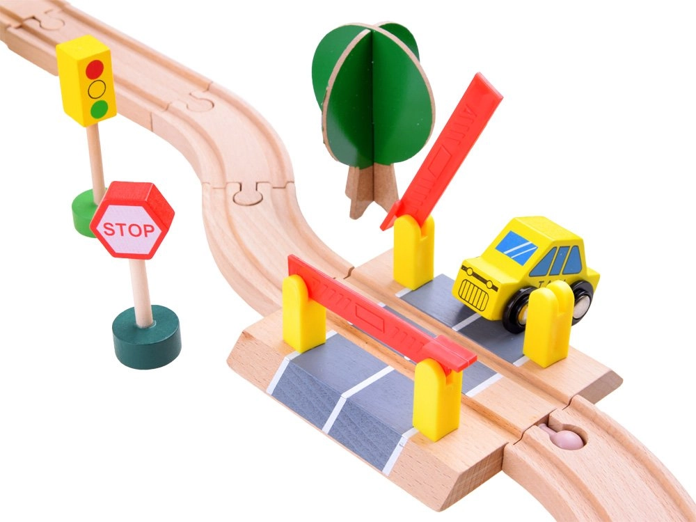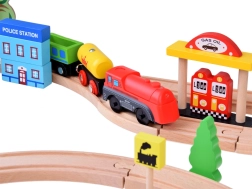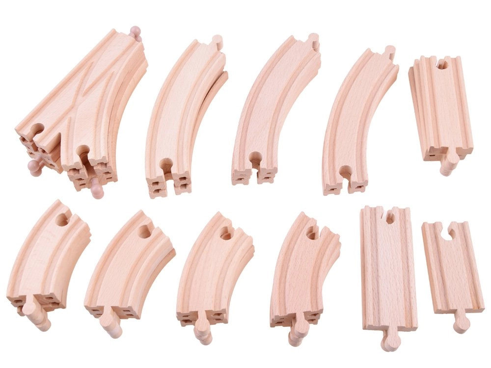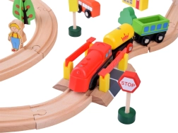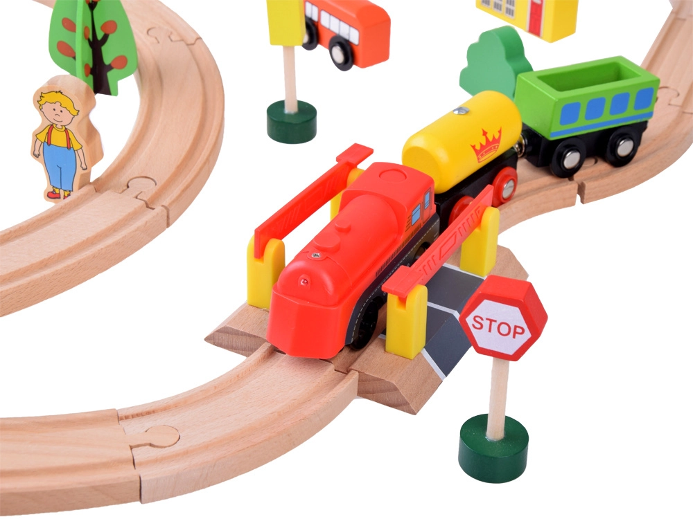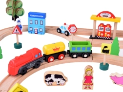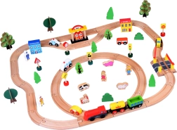 Šis lieliskais koka vilciena trases komplekts ir ideāls bērnu iztēles un sīkās motorikas attīstīšanai. Komplektā ietilpst: