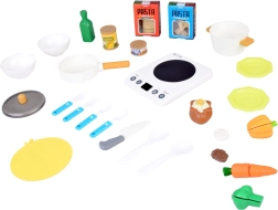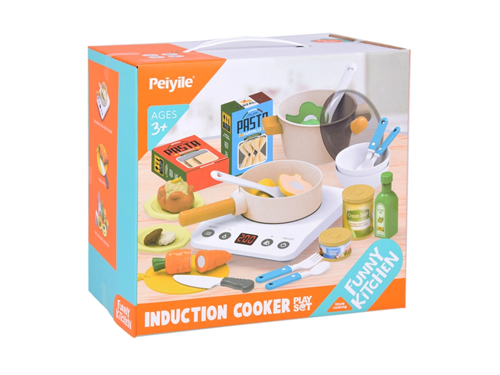 Pārnēsājama bērnu virtuvīte ar indukcijas plīti un bagātīgu piederumu komplektu ir ideāli piemērota jebkuram bērnu istabas interjeram. Dāvājiet bērniem prieku par gatavošanu un garšu atklāšanu drošā un radošā veidā.