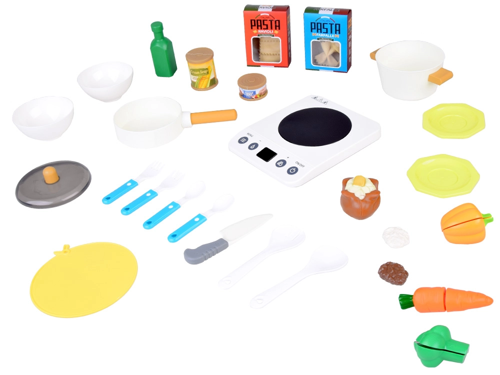 Pateicoties interaktīvajai plītij un daudzveidīgajiem piederumiem, bērni izbaudīs neskaitāmas stundas jautru spēļu, atdarinot gatavošanu.