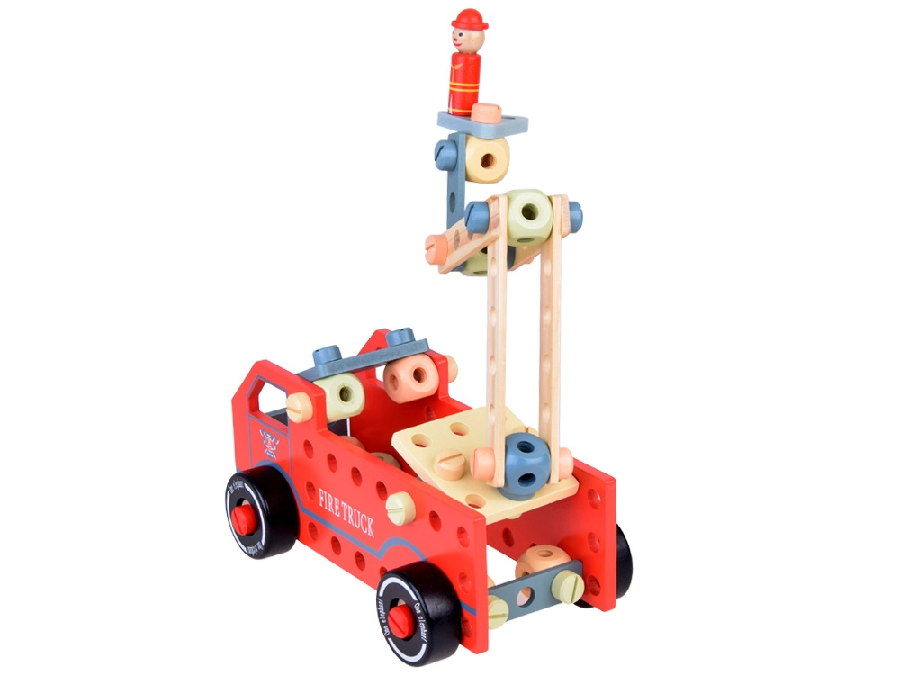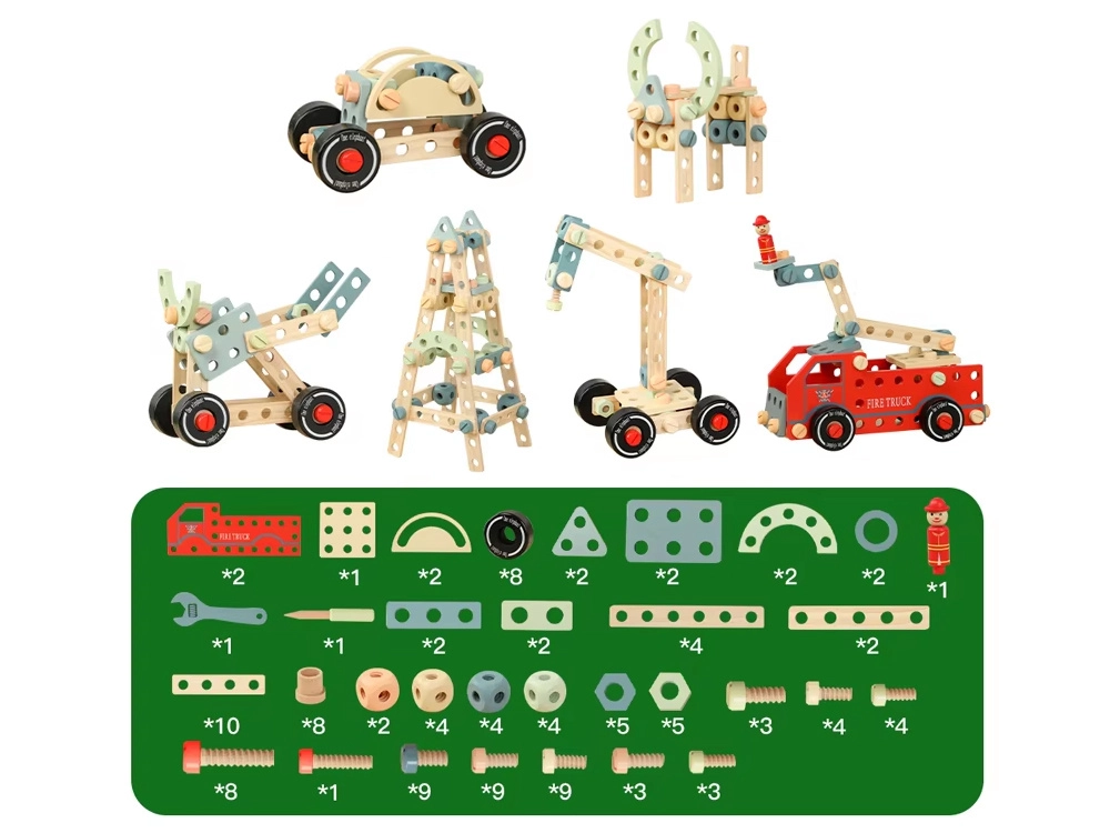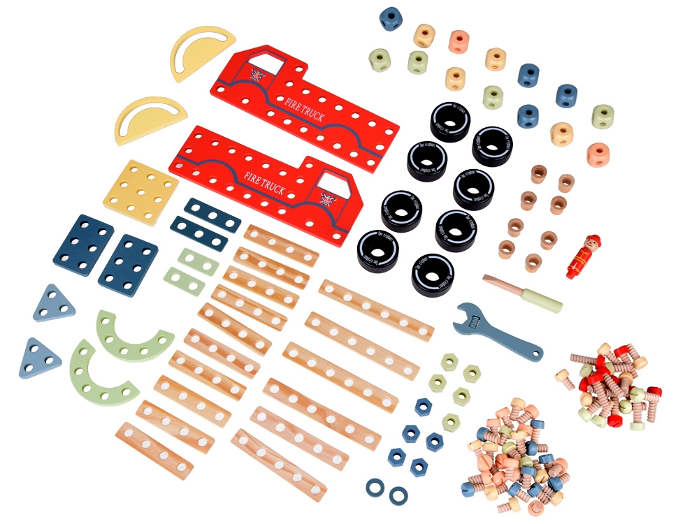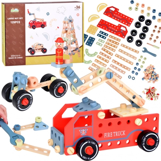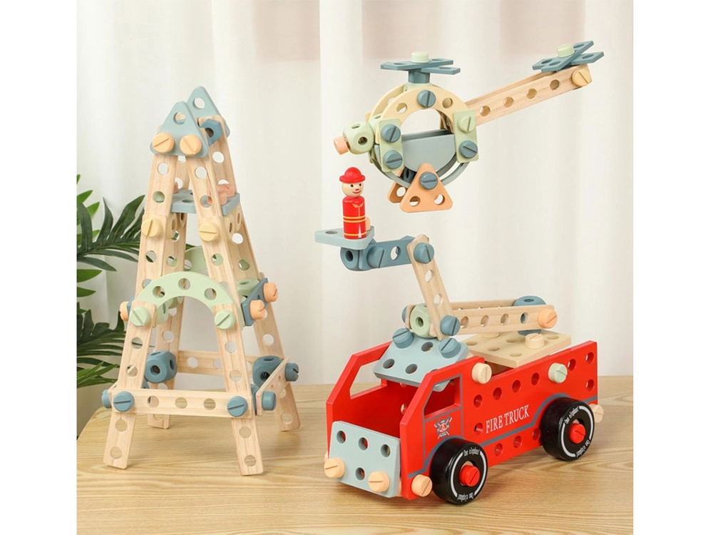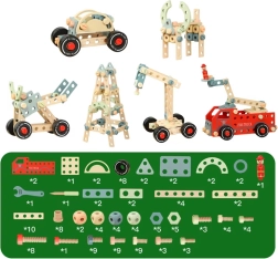 Ienirstiet radošuma pasaulē ar mūsu koka konstruktoru, kas veicina bērnu galveno prasmju attīstību. Šis izglītojošais komplekts ļauj izveidot dažādus modeļus, piemēram, ugunsdzēsēju auto, lidmašīnas un citus radošus veidojumus.