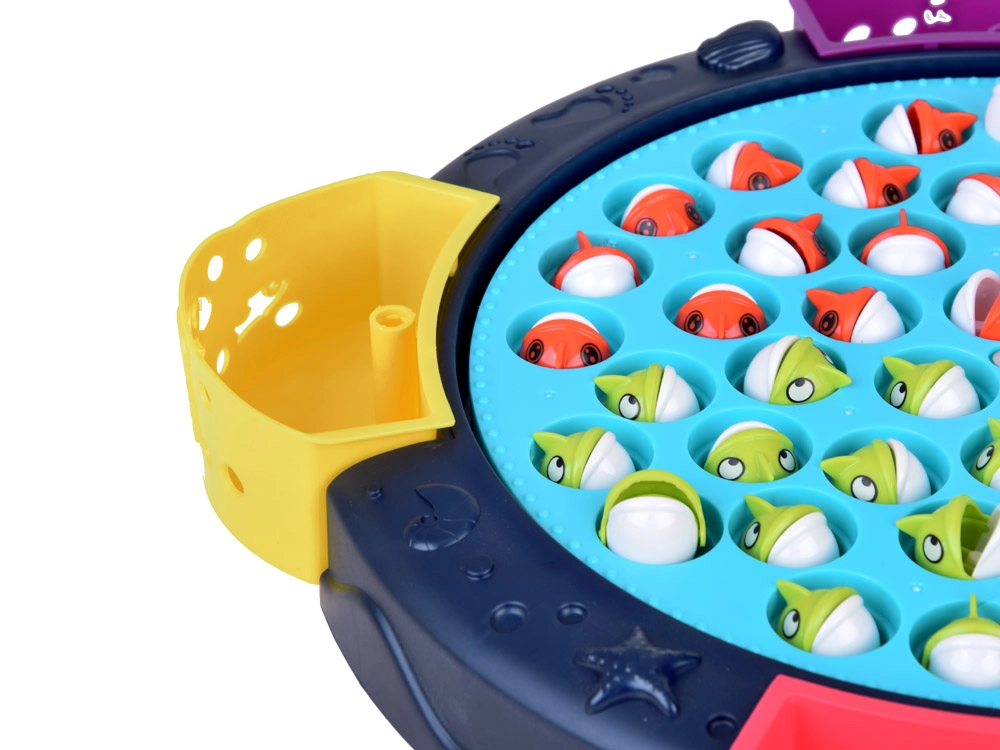 Aizraujoša interaktīva spēle bērniem un vecākiem, kurā ar makšķerēm ķerat ziviņas no rotējoša dīķīša. Spēli var spēlēt līdz 4 spēlētājiem, tā ietver 45 ziviņas košās krāsās un atskaņo burbuļošanas skaņas un jautru melodiju. Lieliski attīsta smalko motoriku un acu–roku koordināciju. Piemērota no 3 gadu vecuma, barošana 3× AA.