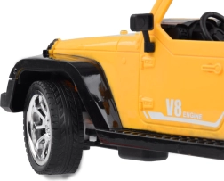 Atvērta džipa tipa virsbūve, hromēti riteņi un detalizēts salons padara modeli pievilcīgu bezceļa auto gan bērniem, gan entuziastiem.