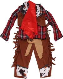 Kļūsti par mežonīgo rietumu varoni ar šo pilno kostīmu! Ideāli piemērots bērniem ar augumu 110–120 cm. Iekļauti visi aksesuāri autentiskam izskatam: krekls, bikses, veste, cepure, josta un lakats. Lieliski der karnevālam, skolas pasākumiem un bērnu ballītēm.
