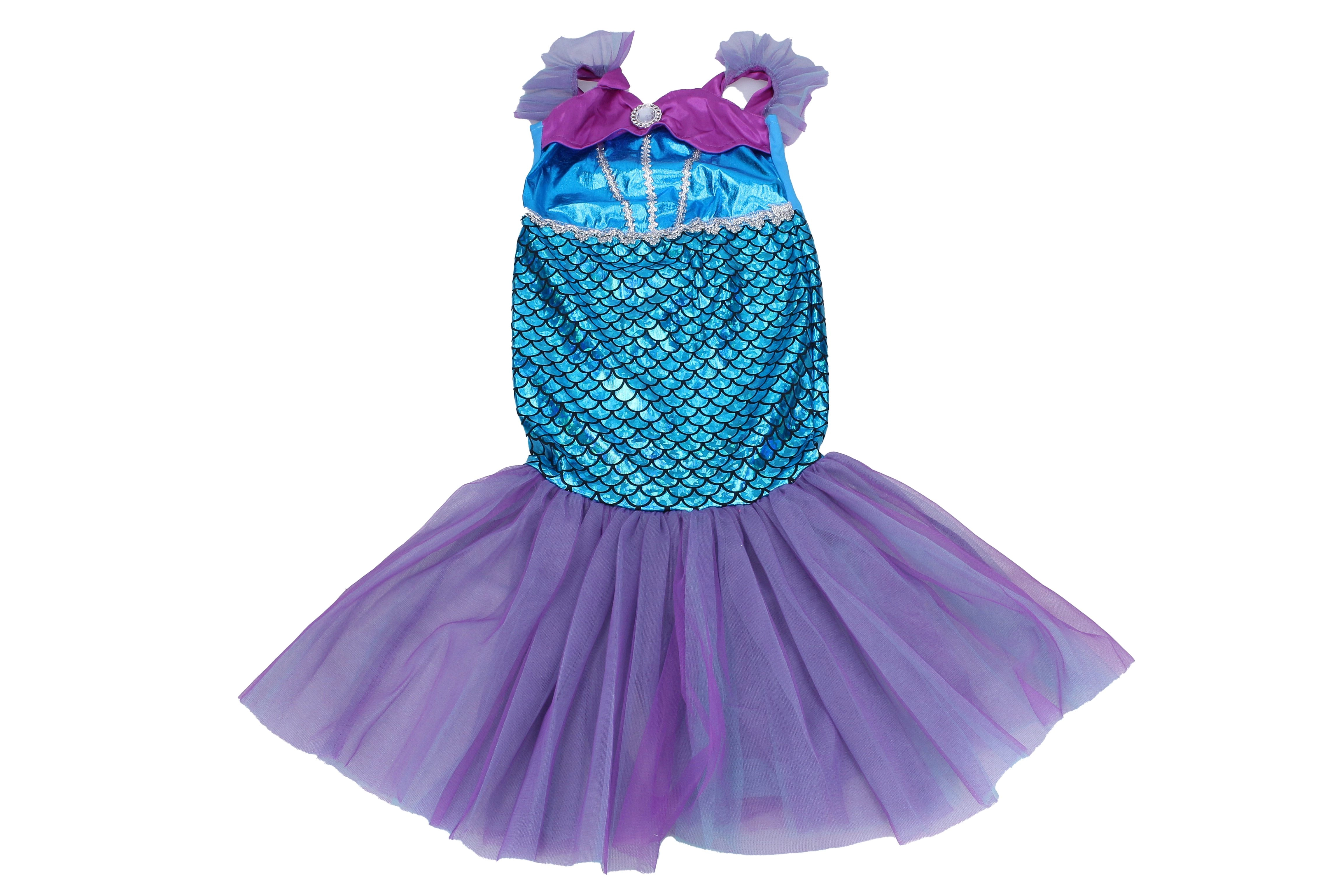 Pārvērtiet mazo princesi pasakainā jūras feijā ar šo skaisto karnevāla kostīmu jūras nāriņa izmērā M. Kostīms paredzēts bērniem 110–120 cm un ietver ērtas kleitas, kas ideāli piemērotas karnevālam, masku ballei un bērnu svinībām.