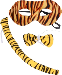 Pārvērtieties par nevaldāmu plēsēju dažu mirkļu laikā! Šis karnevāla komplekts ietver visu nepieciešamo ātrai un jautrai pārvērtībai – masku, astu un tauriņu. Ideāli piemērots karnevāliem, bērnu ballītēm un tematiskiem pasākumiem.