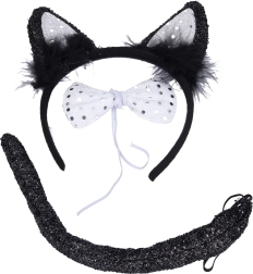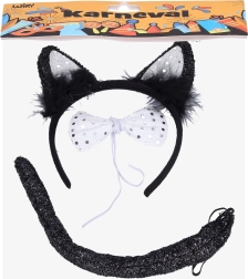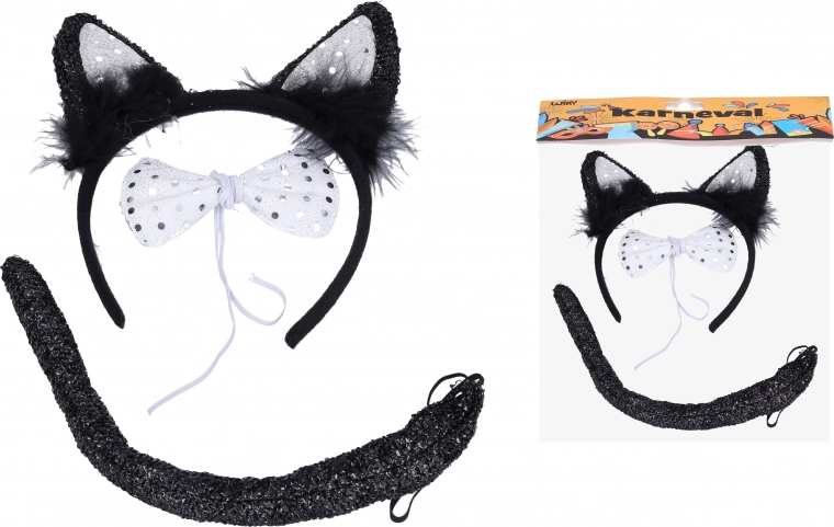 Dažu mirkļu laikā izveidojiet mīlīgu kaķa izskatu. Šis universālais karnevāla komplekts ir viegls, viegli uzliekams un lieliski papildina gan kostīmu, gan ikdienišķāku ballīšu tērpu. Pateicoties vienkāršajam izpildījumam, piemērots gan bērniem, gan pieaugušajiem.