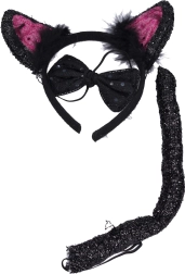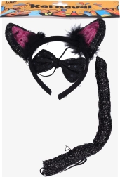 Komplekts “melnā kaķene” ir lieliski piemērots gan karnevāliem, gan dzimšanas dienas svinībām vai tematiskiem pasākumiem. Pateicoties tā vienkāršajam dizainam, tas ir piemērots bērniem no 6 gadu vecuma. Katrs komplekta elements ir veidots, ņemot vērā ērtību un drošību – elastīgā matu stīpiņa pielāgojas dažādiem galvas izmēriem, savukārt tauriņš un aste nodrošina ērtu valkāšanu ilgāku laiku. Melna krāsa piešķir tērpam laikmetīgu un universālu izskatu, kuru viegli saskaņot ar dažādiem apģērba stiliem.