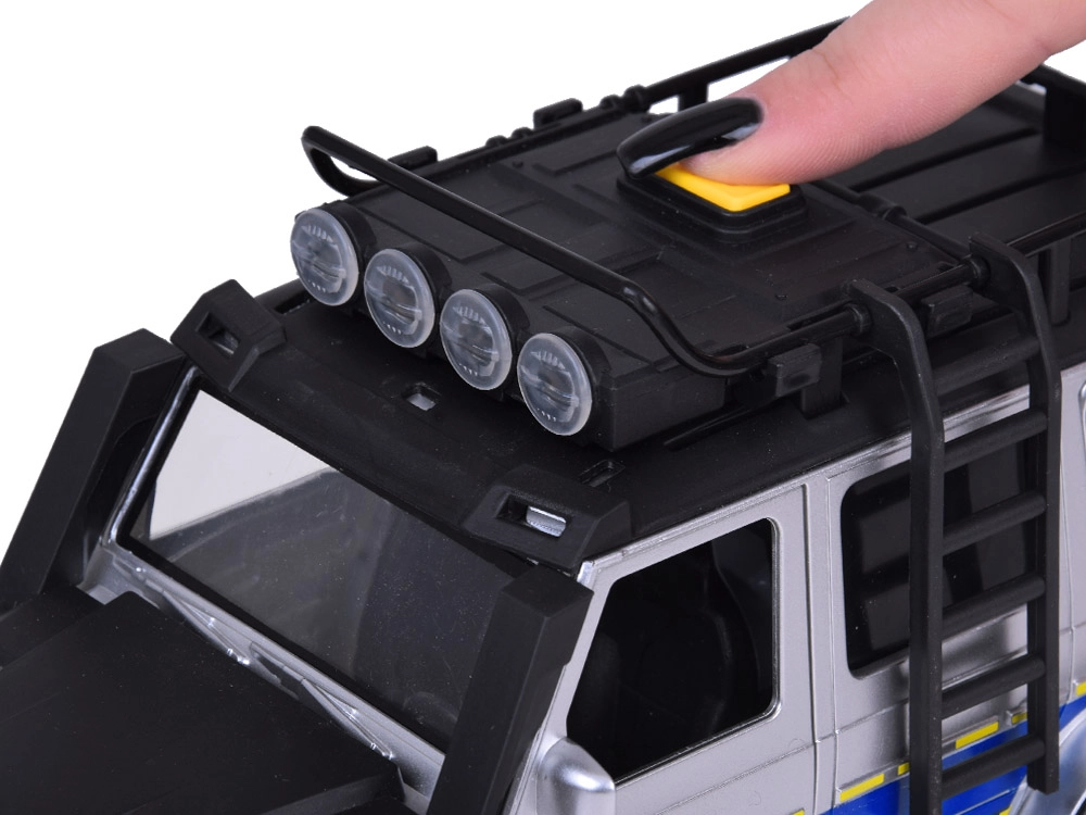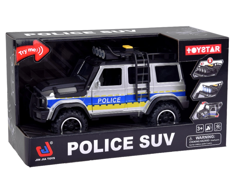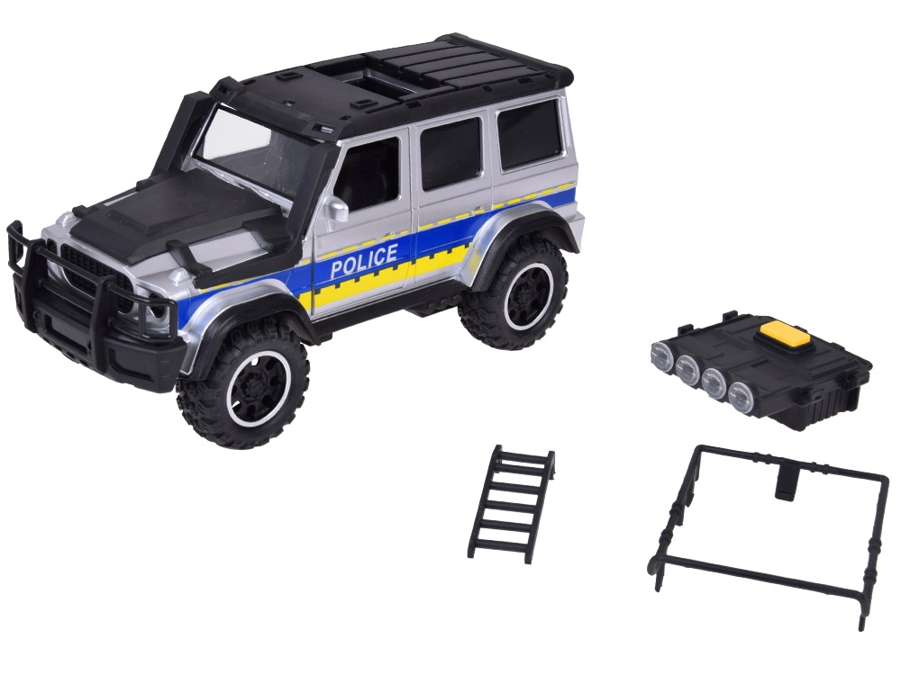 Izgatavota no kvalitatīvas plastmasas ar uzsvaru uz detaļām, rotaļlieta atgādina īstu policijas auto.