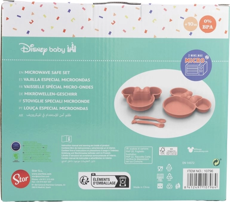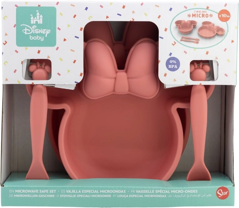 Šis četrdaļīgais Minnie Mouse ēdināšanas komplekts piešķirs jautrību katrai jūsu bērna ēdienreizei. Tas ietver šķīvīti, bļodiņu un galda piederumu komplektu (karotīti un dakšiņu), kas ir ideāli piemēroti bērniem.