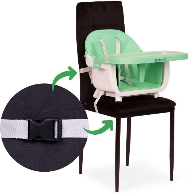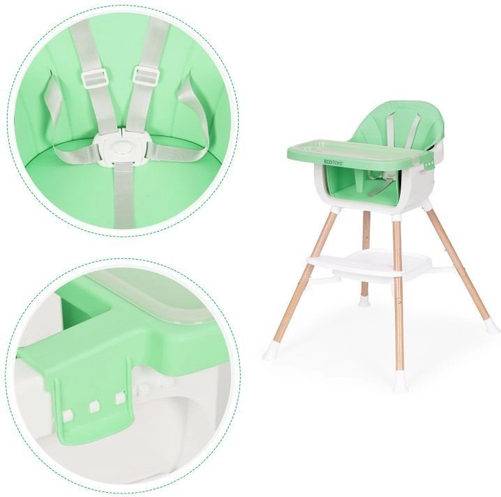 Praktisks bērnu barošanas krēsliņš 2 vienā no ECOTOYS apvieno augsto krēslu un atsevišķu sēdekli piestiprināšanai pie parasta krēsla. Tas piedāvā stabilu konstrukciju ar metāla kājām, viegli tīrāmu divkāršu paplāti, ko var mazgāt trauku mazgājamajā mašīnā, 5 punktu drošības jostu, pret-slīdēšanas uzgaļus un kājbalstu. Ideāli bērniem no 6 līdz 36 mēnešiem, ar 20 kg slodzes limitu.