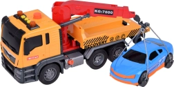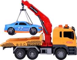 Liela rotaļlieta evakuators ar gaismas un skaņas efektiem un zilu sporta auto ir ideāla mazajiem auto cienītājiem! Šis komplekts piedāvā reālistiskas detaļas un funkcijas, pateicoties kurām bērni kļūs par varoņiem uz ceļa.