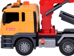 Evakuators, pateicoties saviem izmēriem, spēj pārvadāt vairākus jau mājās esošus rotaļu automobiļu modeļus.