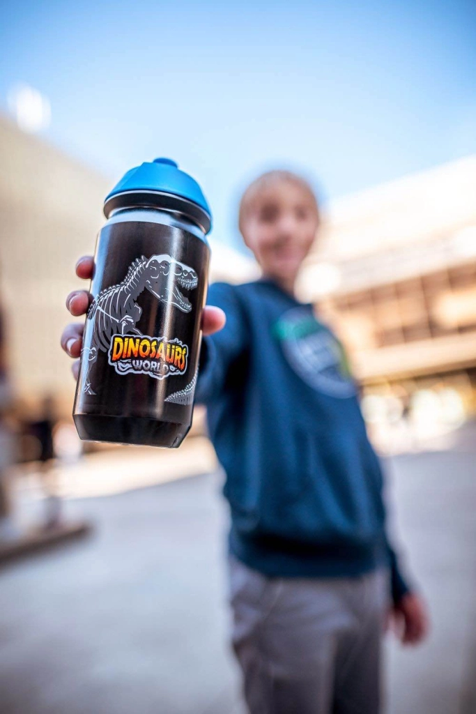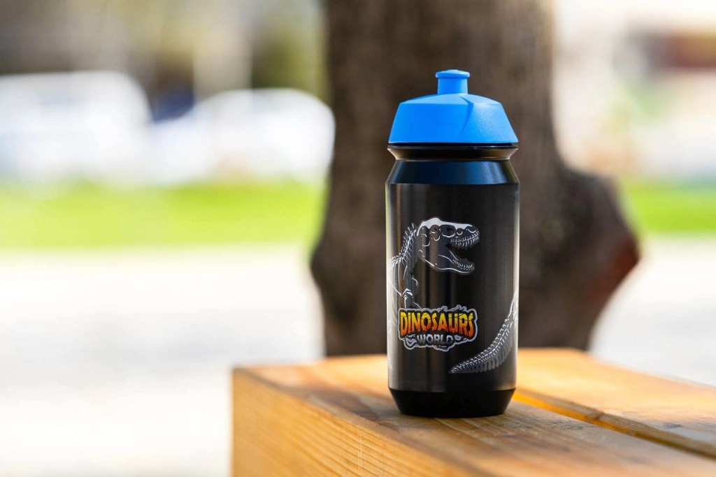 Saistošais dinozauru motīvs motivē regulāri dzert, un pudele labi izskatās gan mājās, gan ārpus tām.