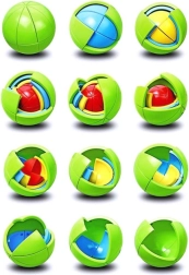 Šī gudri izstrādātā galvaslauzītes lode sastāv no daudzkrāsainiem slāņiem un kopumā 21 detaļas, kuras var viegli izjaukt un atkal salikt kompaktā formā. Pateicoties patīkamajām krāsām un gludajai virsmai, tā ir ērti lietojama un motivē atkal un atkal risināt uzdevumu.