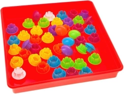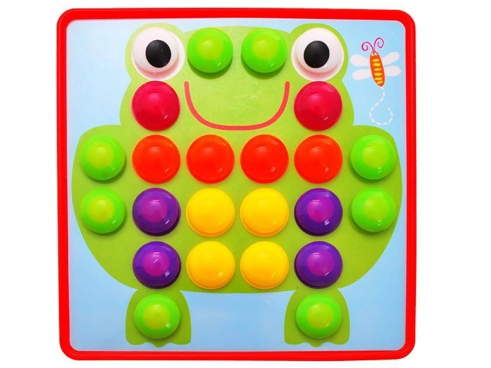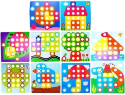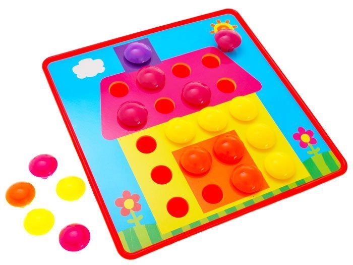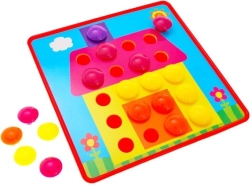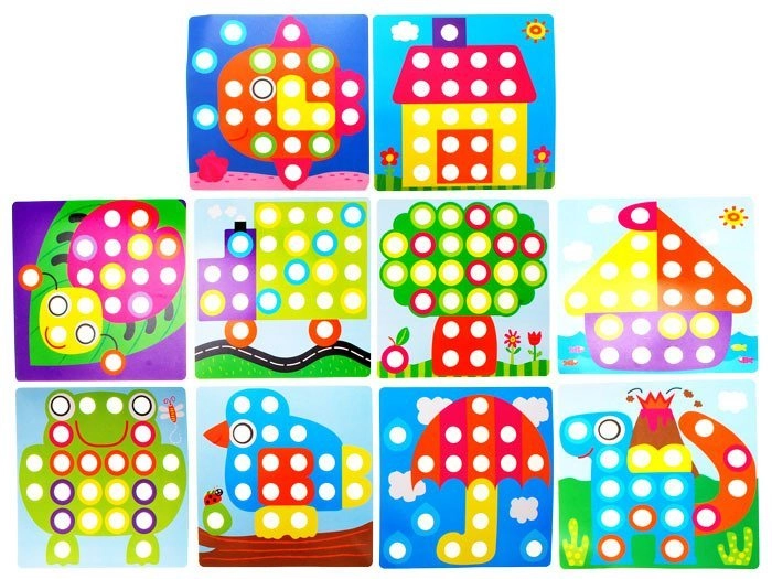 Bērni veido košus attēlus no krāsainām tapām, trenē satvērienu, precizitāti un acu–roku koordināciju, kā arī attīsta iztēli.