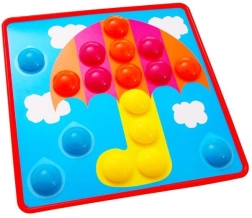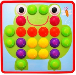 Radošā mozaīka ar tapām ir lieliska izvēle zinātkāriem bērniem. Komplektā ir krāsainas tapas, plastmasas plāksne un attēlu paraugi, kuros bērni ievieto tapas pēc krāsām vai pēc savas fantāzijas. Spēle veicina radošo domāšanu, krāsu atpazīšanu un sīko motoriku.