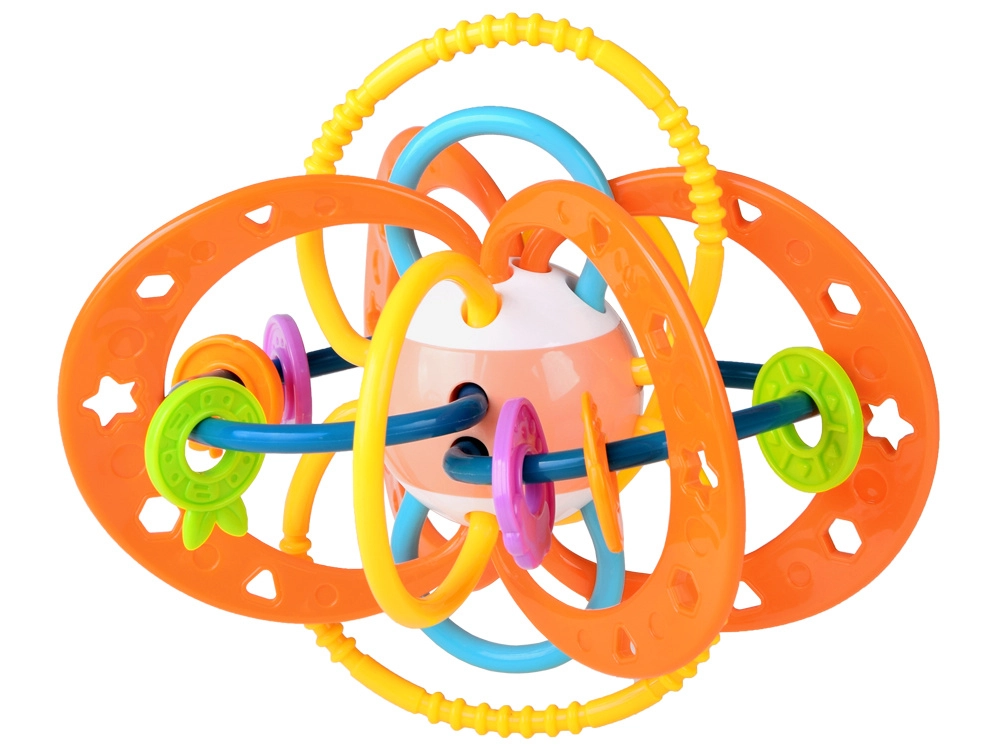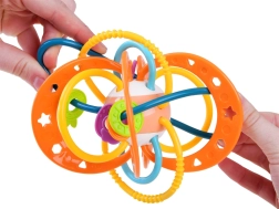Šī krāsainā košļājamā rotaļlieta ar grabulīti sniedz mazulim daudz sensoru ierosmju. Savītās cilpas ir viegli satveramas mazām rociņām, mainīgās tekstūras maigi masē smaganas un mazina diskomfortu zobu augšanas laikā. Vieglais dizains ir ideāls gan mājās, gan ceļā.