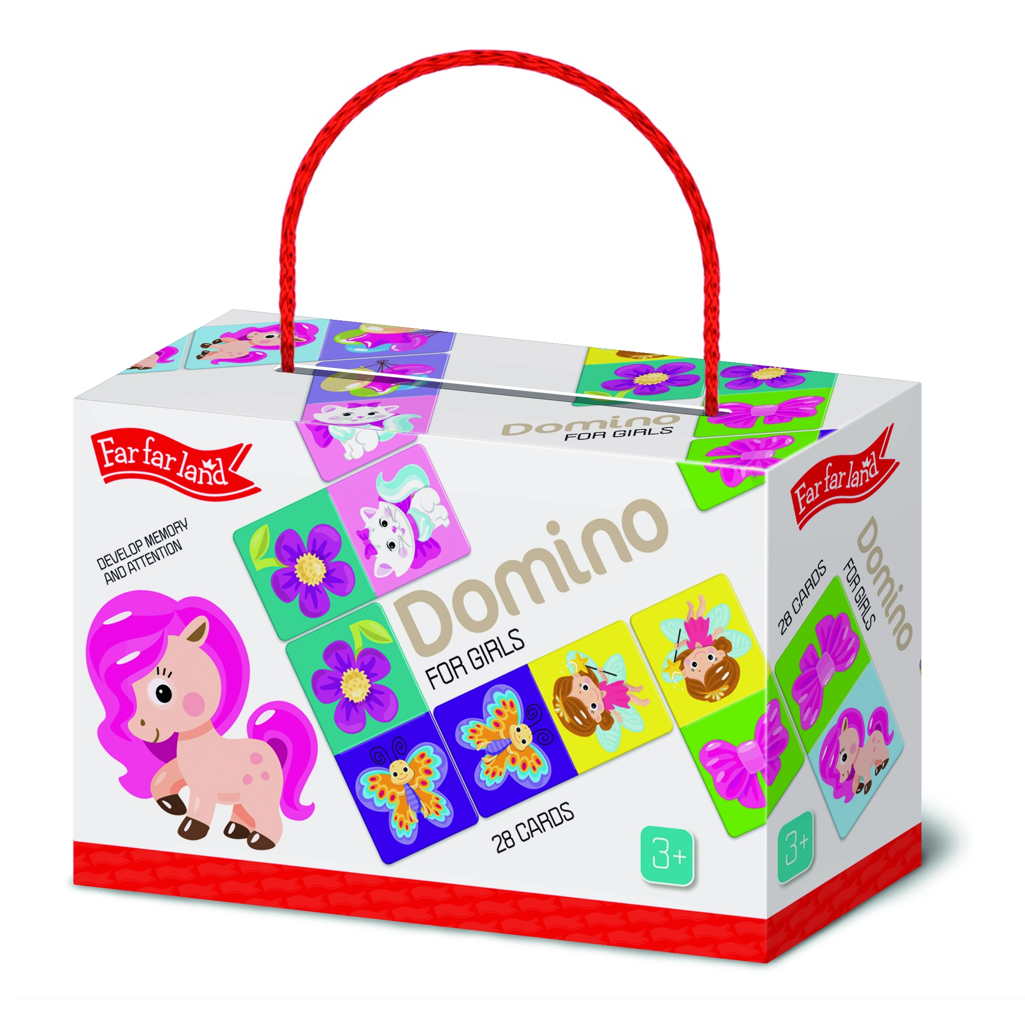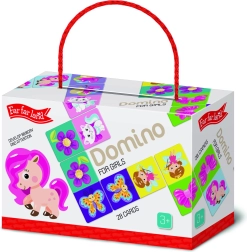 Atklājiet Far Far Land Domino ar attēliem burvību — lielisks veids, kā pavadīt laiku ar ģimeni vai draugiem. Šī spēle ir paredzēta diviem līdz pieciem spēlētājiem, un katrā komplektā ir 28 kartītes, kas gaida, lai tās izliktu un savienotu atbilstošos attēlus.