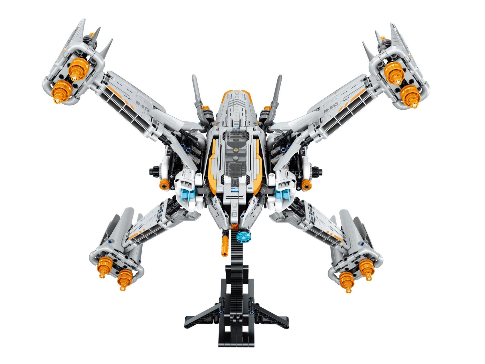 Šis lielais konstruktors piedāvā visu aizraujošām kosmosa misijām un iespaidīgai ekspozīcijai. Pateicoties pārdomātai konstrukcijai, jūs viegli izveidosiet futuristisku kuģi ar regulējamiem spārniem, rotējošiem dzinējiem un mehānisko piedziņu, kas piešķir modelim reālistisku izskatu un funkcionalitāti. Stabils statīvs izceļ katru detaļu uz plaukta.