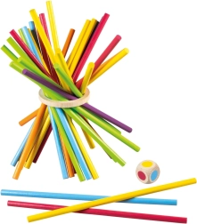 Spēle Tīčko spēle piedāvā svaigu skatījumu uz klasisko mikado. Koka krāsainās nūjiņas ar gludu virsmu un izturīgs gredzens aicina spēlēt atkal un atkal. Met kauliņu, izvēlies krāsu un uzmanīgi izvelc pareizo nūjiņu tā, lai koka gredzens nepieskartos galdam – vienkārši noteikumi, bet pārsteidzoši aizraujoša izklaide.
