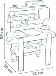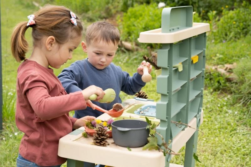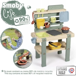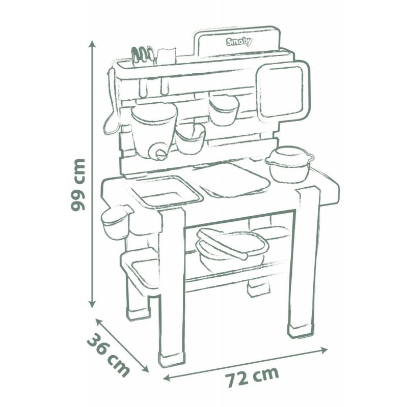 Atklājiet āra jautrību ar komplektu SMOBY LIFE – bērnu āra virtuvi ūdenim un smiltīm, kas veicina radošumu, sajūtu uztveri un sadarbību. Pateicoties izņemamiem traukiem, darbojošam jaucējkrānam un bagātīgam 15 piederumu komplektam, bērni pavadīs stundas, veidojot no smiltīm, ūdens un dabas “dārgumiem”.