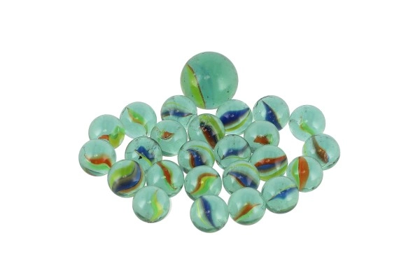 Klasisks stikla bumbiņu komplekts gan mazajiem, gan pieaugušajiem tradicionālo spēļu entuziastiem. Tīkliņā atradīsiet dažādu izmēru maisījumu ar skaistu varavīksnes zīmējumu, ideāli piemērotu spēlei pagalmā un arī kā dekorāciju. Attīsta precizitāti, godīgas spēles sacensību garu un smalko motoriku. Iepakojumā ir 24 + 1 bumbiņa.