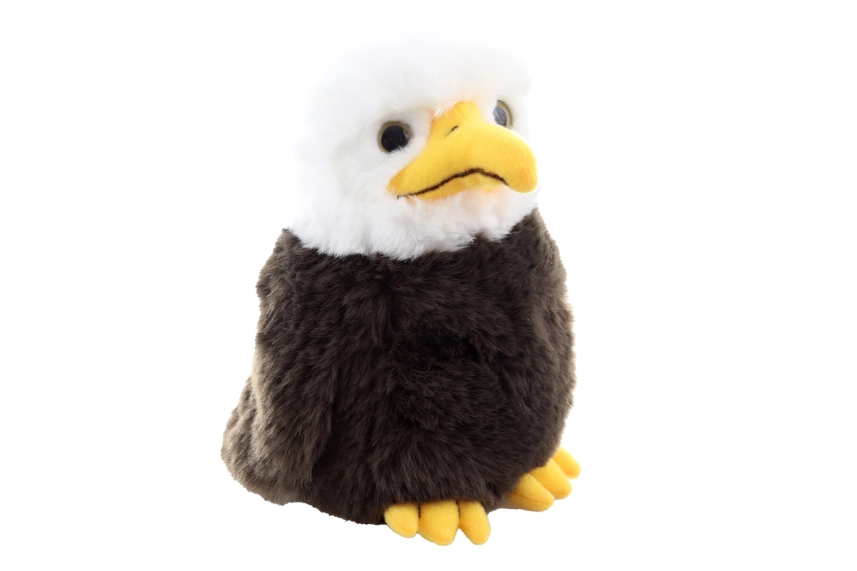 Pūkains ērglis ar baltu galvu, dzeltenu knābi un brūnu ķermeni ir veidots tā, lai pēc iespējas uzticamāk atdarinātu īstu ērgli.