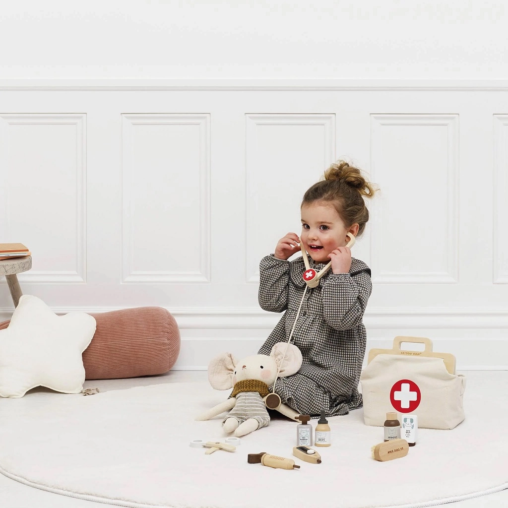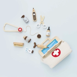 Šī unikālā veterinārā soma ar piederumiem ir ideāla mazajiem zinātkārajiem veterinārārstiem. Komplektā ir 10 instrumenti, kas izgatavoti no beicēta dabīgā koka ar FSC sertifikātu, nodrošinot ekoloģisku un ilgtspējīgu izcelsmi. Bērni var iegrimt dzīvnieku aprūpes pasaulē ar lieliskiem rīkiem, piemēram, stetoskopu, šķērēm un injekciju šļirci. Soma ir izstrādāta, lai veicinātu radošumu un attīstītu iztēli.