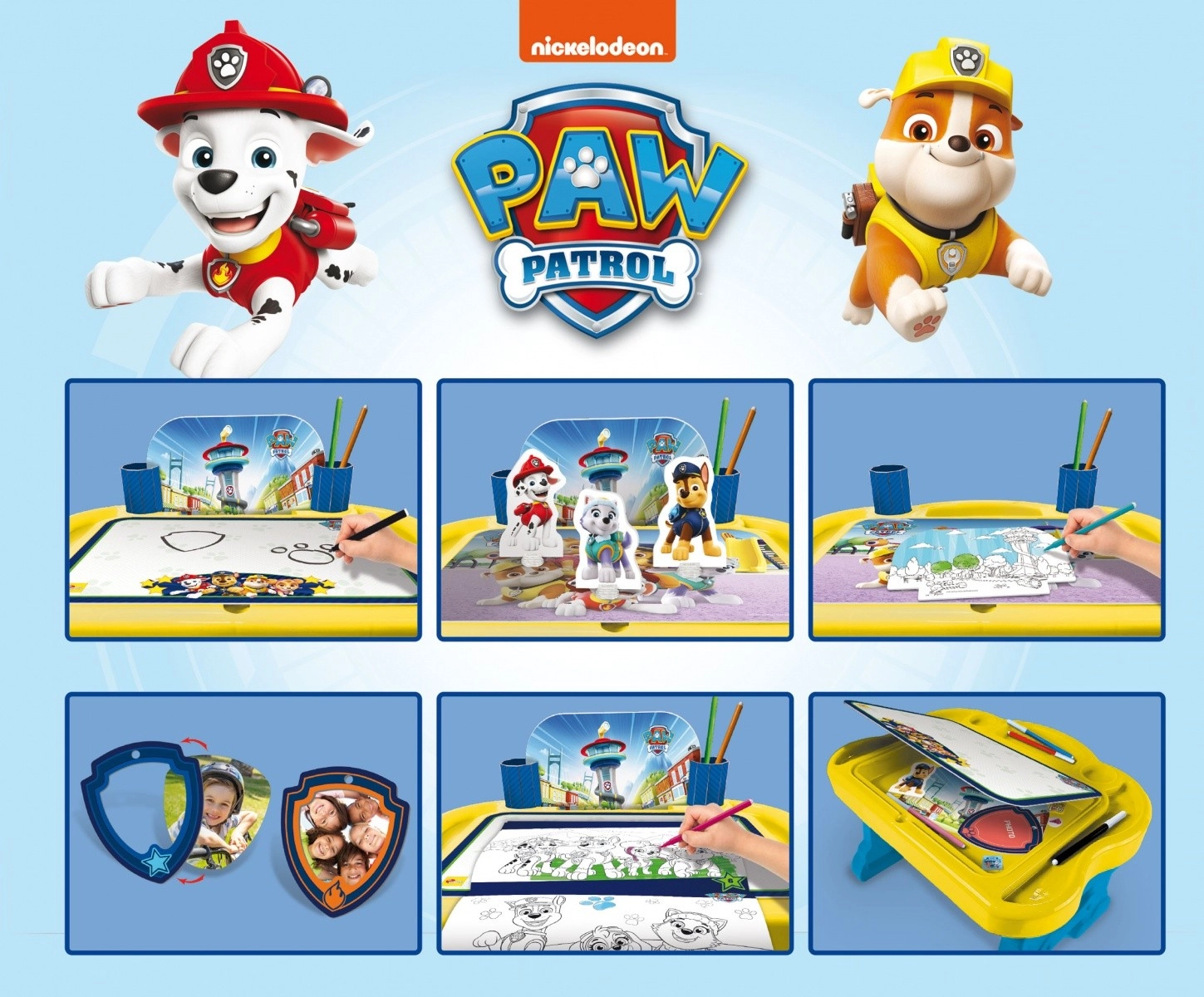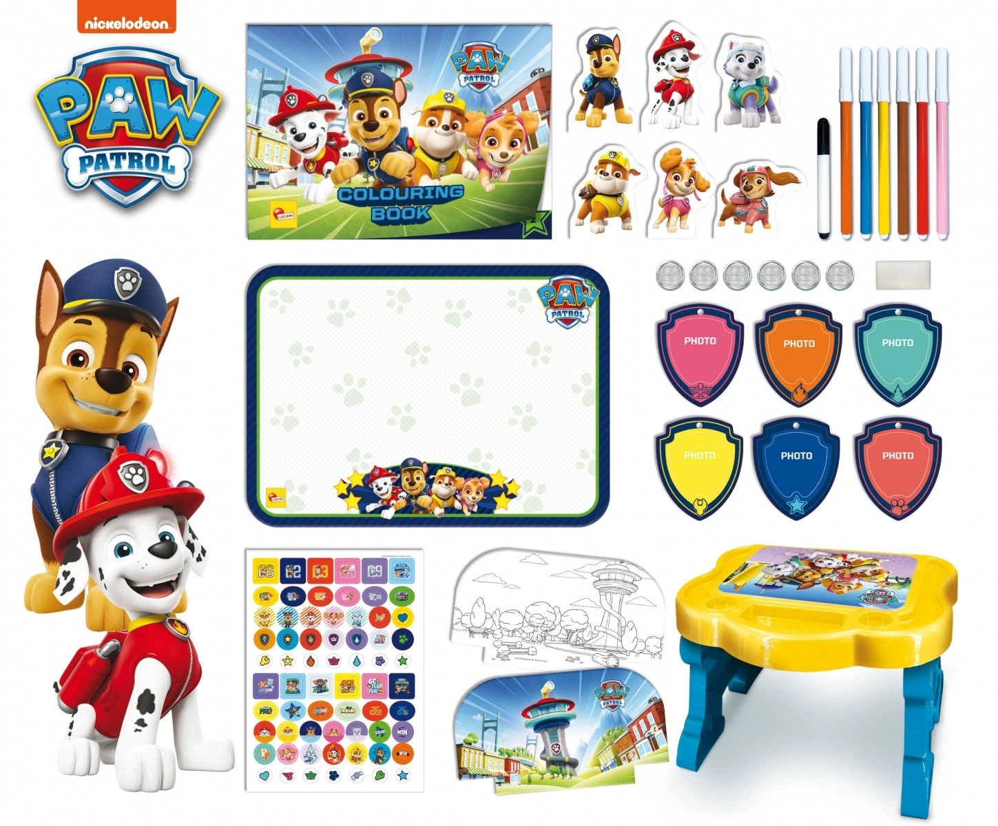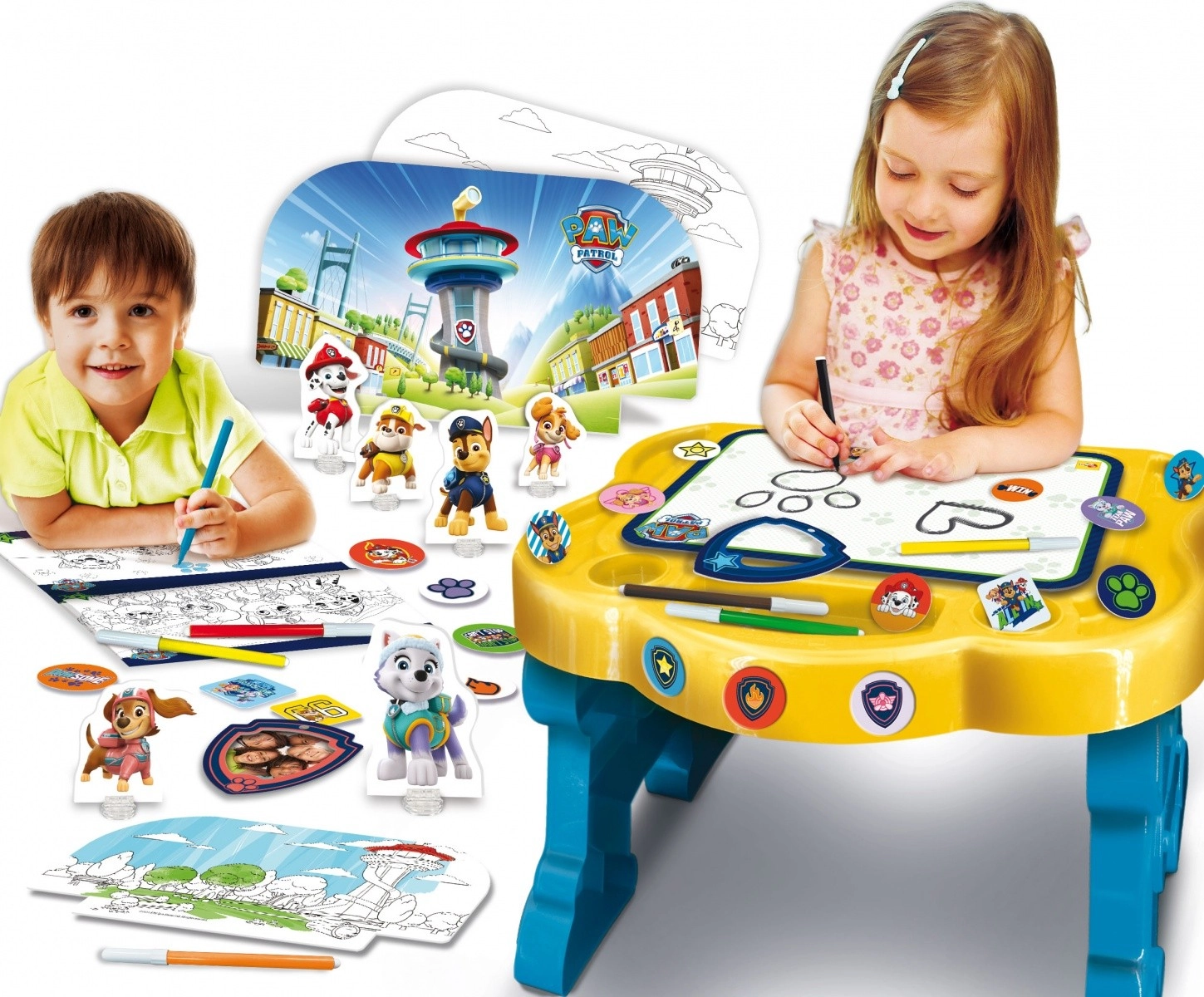 Atklājiet radošo rakstāmgalds PAW Patrol bērniem no 3 gadu vecuma, kas apvieno izklaidi un mācīšanos. Komplektā iekļautas izglītojošas spēles, flomāsteri, krāsojamās lapas un citas aktivitātes iztēles un sīkās motorikas attīstībai.