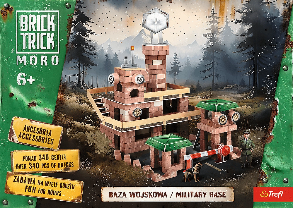 Ar Trefl Brick Trick komplektu jūs varat attīstīt savu radošumu un roku prasmes. Pakāpeniski lieciet ķieģeli pie ķieġeļa, grieziet un līmējiet koka dēlīšus. Jūs paši izlemsiet, kā izskatīsies jūsu militārā bāze, un pat varēsiet īstenot savas idejas.
