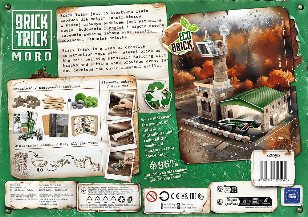Konstruktors Trefel Brick Trick Moro: militārā lidosta XL ļauj jums kļūt par īstu būvmeistaru. Sekojiet instrukcijām vai atbrīvojiet savu radošumu un izdomājiet paši savu dizainu. Strādājiet soli pa solim – no pamatiem līdz būves pabeigšanai. Jūsu radīto darbu var bagātināt ar dažādiem dekoratīviem elementiem.
