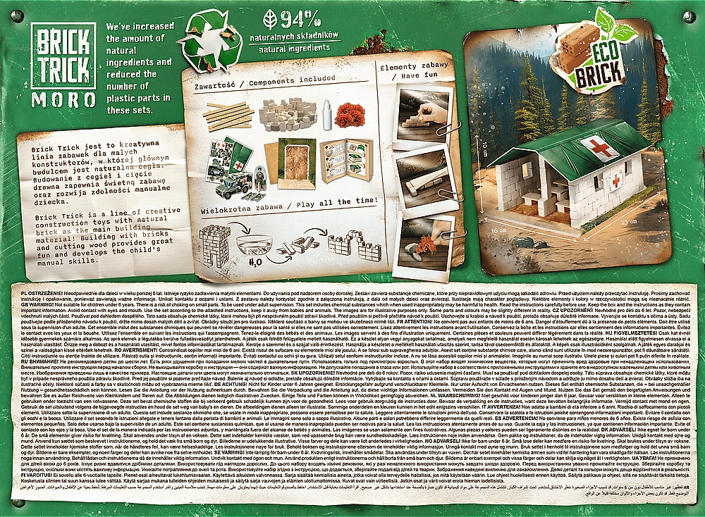 TREFL Brick Trick Moro: Lauka slimnīca XL ir unikāla konstruktora komplekts, kas ļauj kļūt par būvnieku un uzbūvēt savu slimnīcu no īstu būvmateriālu miniatūrām. Lieciet ķieģeli pie ķieģeļa, grieziet un līmējiet koka līstītes un papildiniet savu celtni ar dekorācijām. Šis komplekts ne tikai palīdz trenēt roku prasmes, bet arī attīsta iztēli un veicina koncentrēšanos.