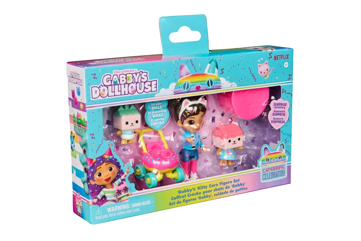 Kitty Care figūriņu komplekts no Gabby’s Dollhouse pasaules iepriecinās ikvienu bērnu, kurš mīl rotaļīgus stāstus un mīlīgas kaķenes. Gan Gabby figūriņai, gan kaķu draugiem ir uzticami detaļu atveidojumi un kustīgas daļas, tāpēc tie viegli iekļaujas jebkurā piedzīvojumā leļļu namiņā un ārpus tā. Komplektā ir arī tematiski ratiņi virtuļa formā, kurus var patiešām ripot.