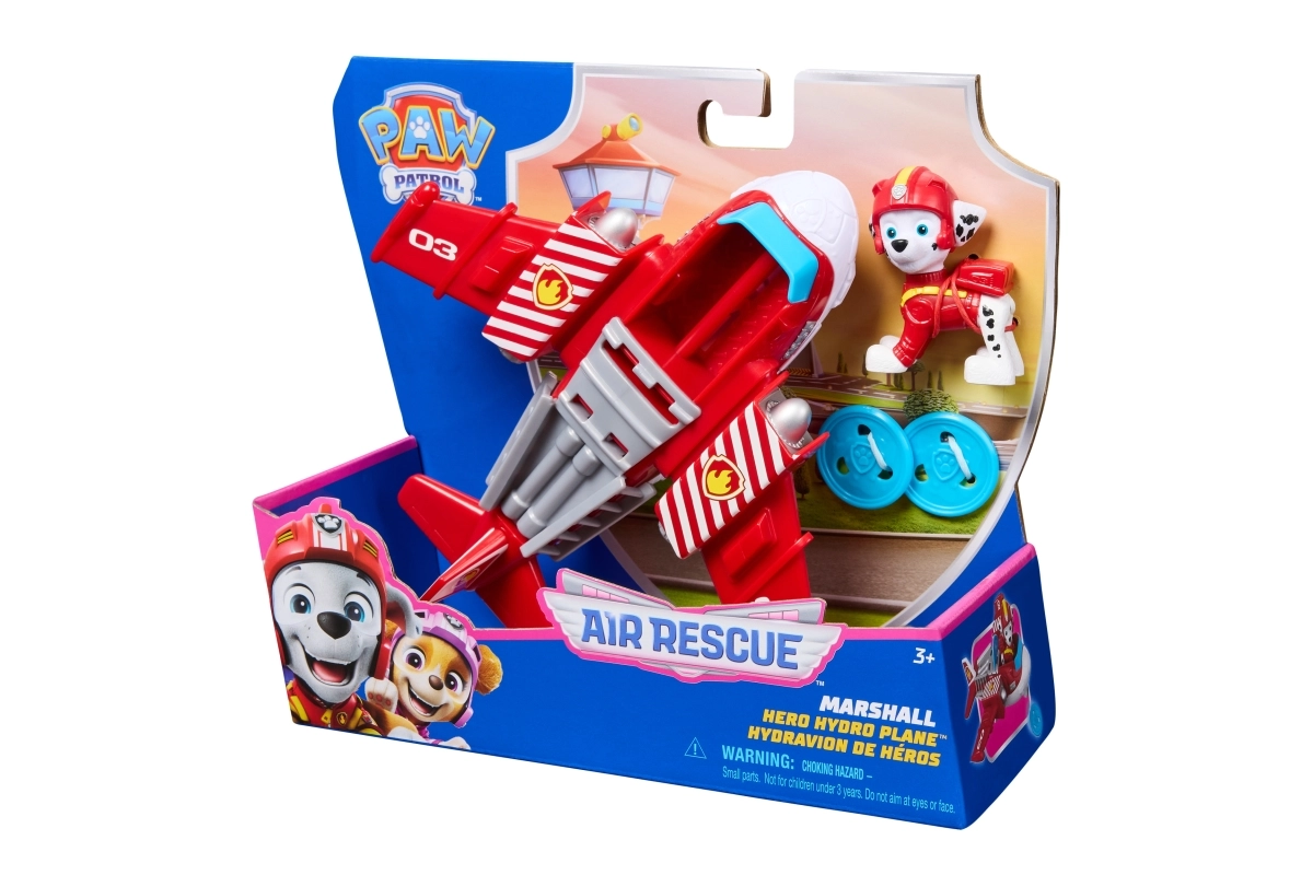 Komplektā ietilpst aptuveni 5 cm augsta Marshalla figūriņa aviācijas glābēja ekipējumā un stilīgs hidroplāns ar funkcionāliem elementiem. Pateicoties gludajiem riteņiem, lidmašīnu ir viegli bīdīt pa grīdu, tāpēc tā ir lieliski piemērota dinamiskai rotaļai bērnu istabā.
