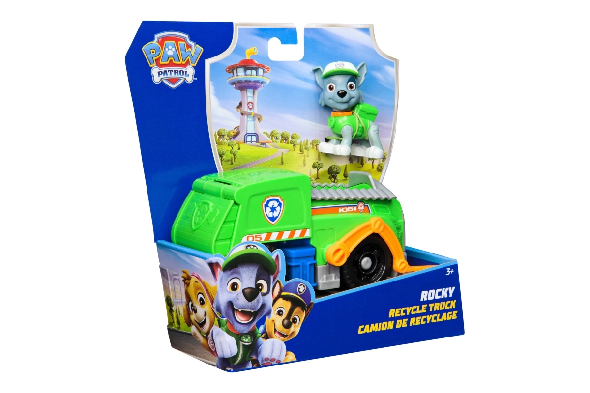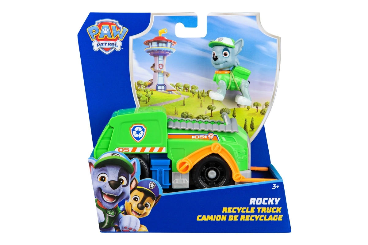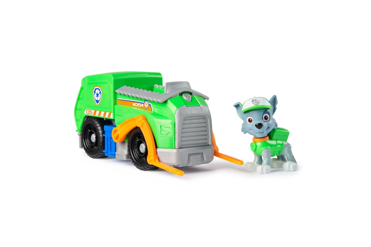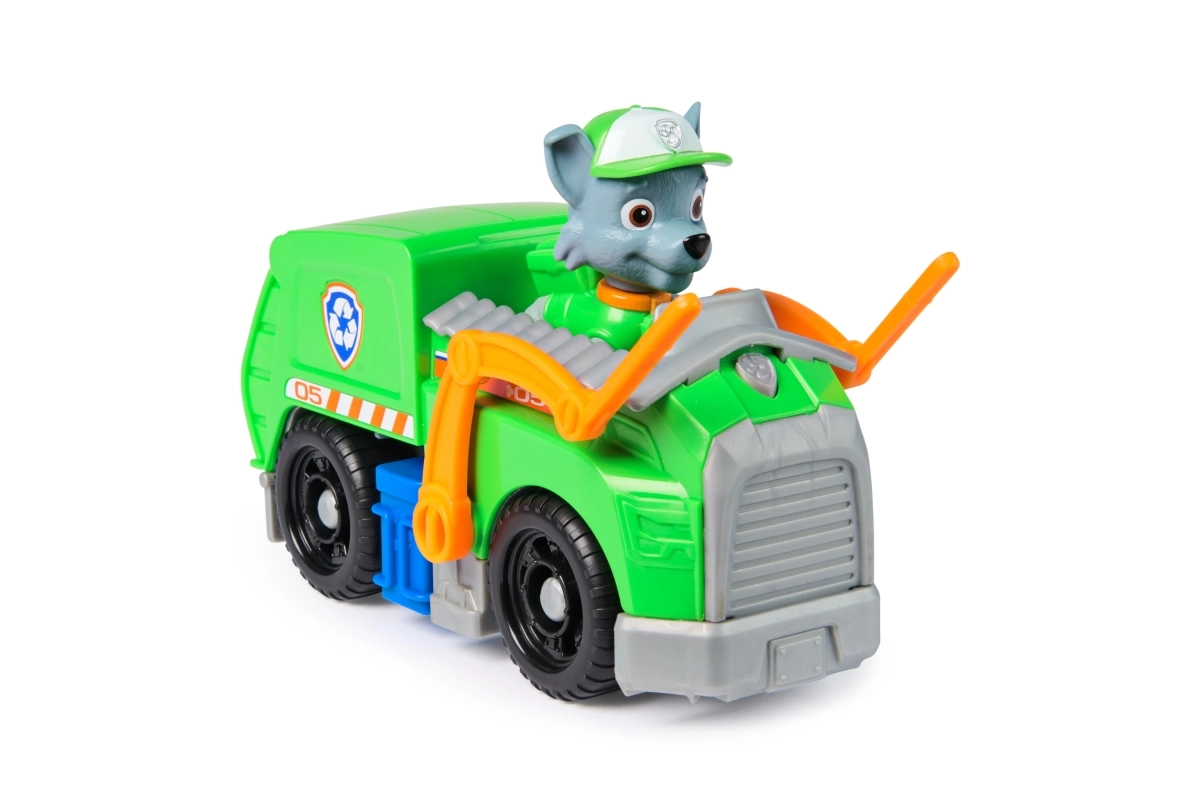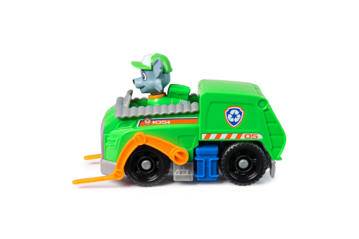 Dodies glābšanas misijā kopā ar Rokiju un viņa zaļo pārstrādes auto no iemīļotā seriāla PAW Patrol. Bērni izbaudīs riteņus ar brīvgaitu, kustīgu pacelšanas roku un atveramu aizmugures vāku reālistiskiem scenārijiem. Komplekts izgatavots no līdz pat 80% pārstrādātas plastmasas, veicina radošu spēli un attīsta sīko motoriku.