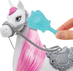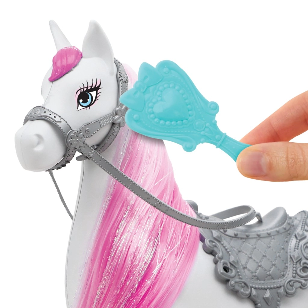 Baltais zirdziņš ar rozā krēpēm un sudrabotiem segliem ļauj princesei doties izbraucienos iztēles pasaulē.