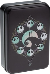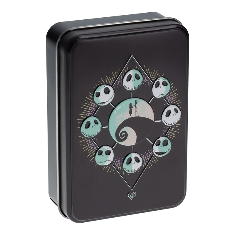 Melnā metāla kārbiņa ar Džeka Skelingtona un Sallijas motīvu ir ideāla glabāšanai un tur jūsu kārtis drošībā.