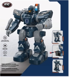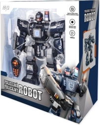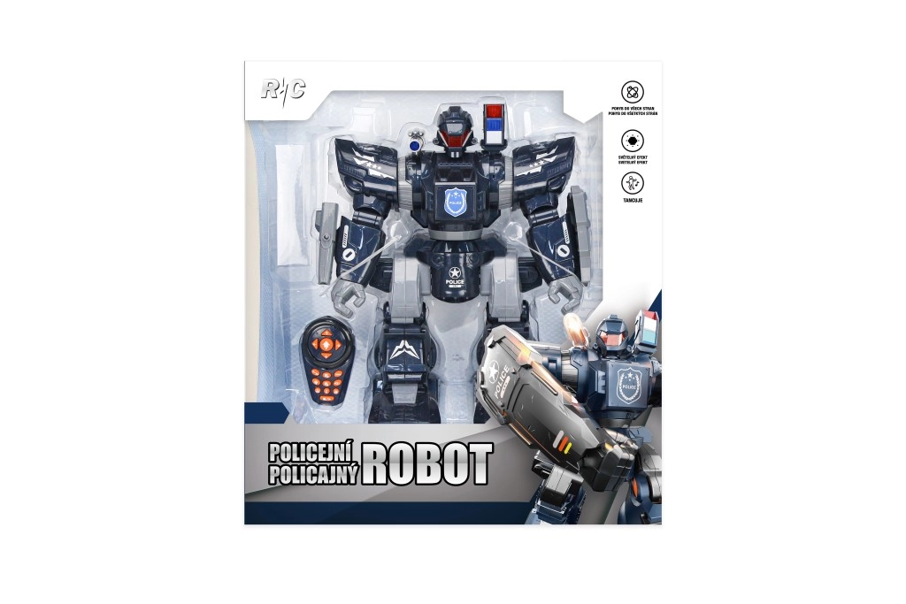 Atklājiet apmēram 38 cm augstu interaktīvu policijas robotu, kas aizrauj ar gaismas efektiem, skaņām un trim deju melodijām. Pateicoties tālvadībai, jūs viegli kontrolēsiet kustību uz priekšu/atpakaļ, pagriezienus, skaļumu un gaismas. Neiztrūkst arī robotizēta roka ar lādiņiem aizraujošai izklaidei un bērnu koordinācijas un iztēles attīstīšanai.