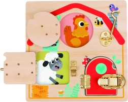 Atklājiet aizraujošu un izglītojošu rotaļlietu pašiem mazākajiem: koka aktivitāšu dēli ar slēdzenītēm, kas attīsta sīko motoriku, loģisko domāšanu un ziņkārību. Trīs dažādi slēdzeņu mehānismi bērnus aizraujoši nodarbina un māca pacietību, kā arī roku koordināciju.