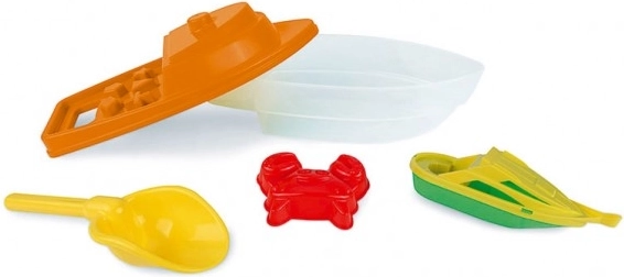 Šī košā plastmasas laiviņa ir neaizstājams papildinājums katram bērnam, kuram patīk rotaļāties pludmalē. Komplektā ir arī dažādas formiņas un trauciņi, kas ļauj radīt darbus smiltīs un ūdenī.